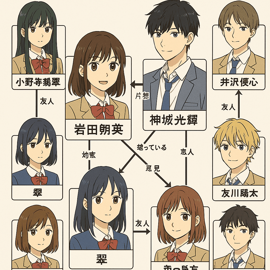 キャラ相関図は、恋の矢印や友情のつながり、そして目には見えない「距離感」を、ひと目で読み取れるように構成されています。
