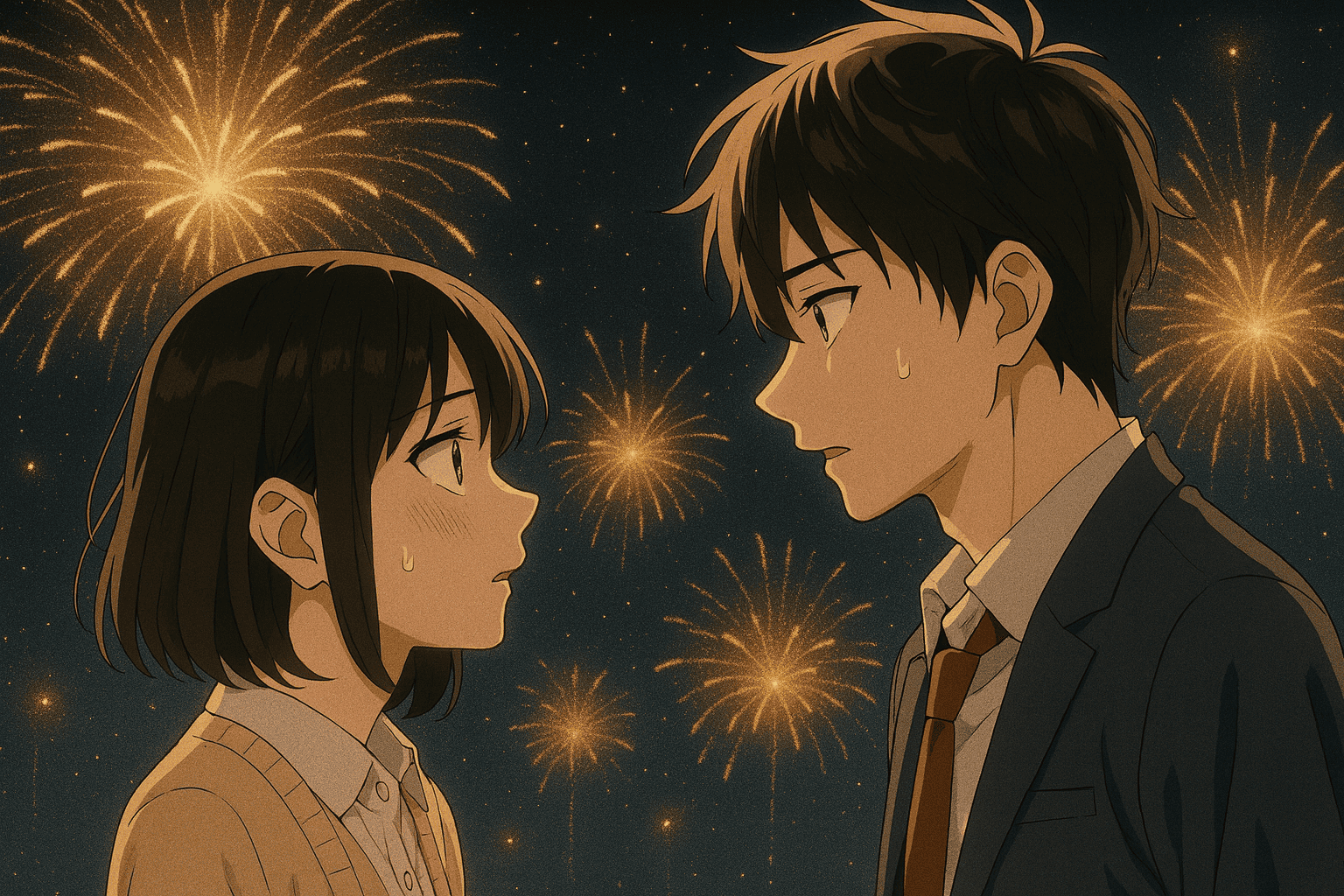 物語が大きく動くのは、学校行事である文化祭の夜。花火が上がり、クラスメイトたちの喧騒からふたりが外れたその瞬間──。