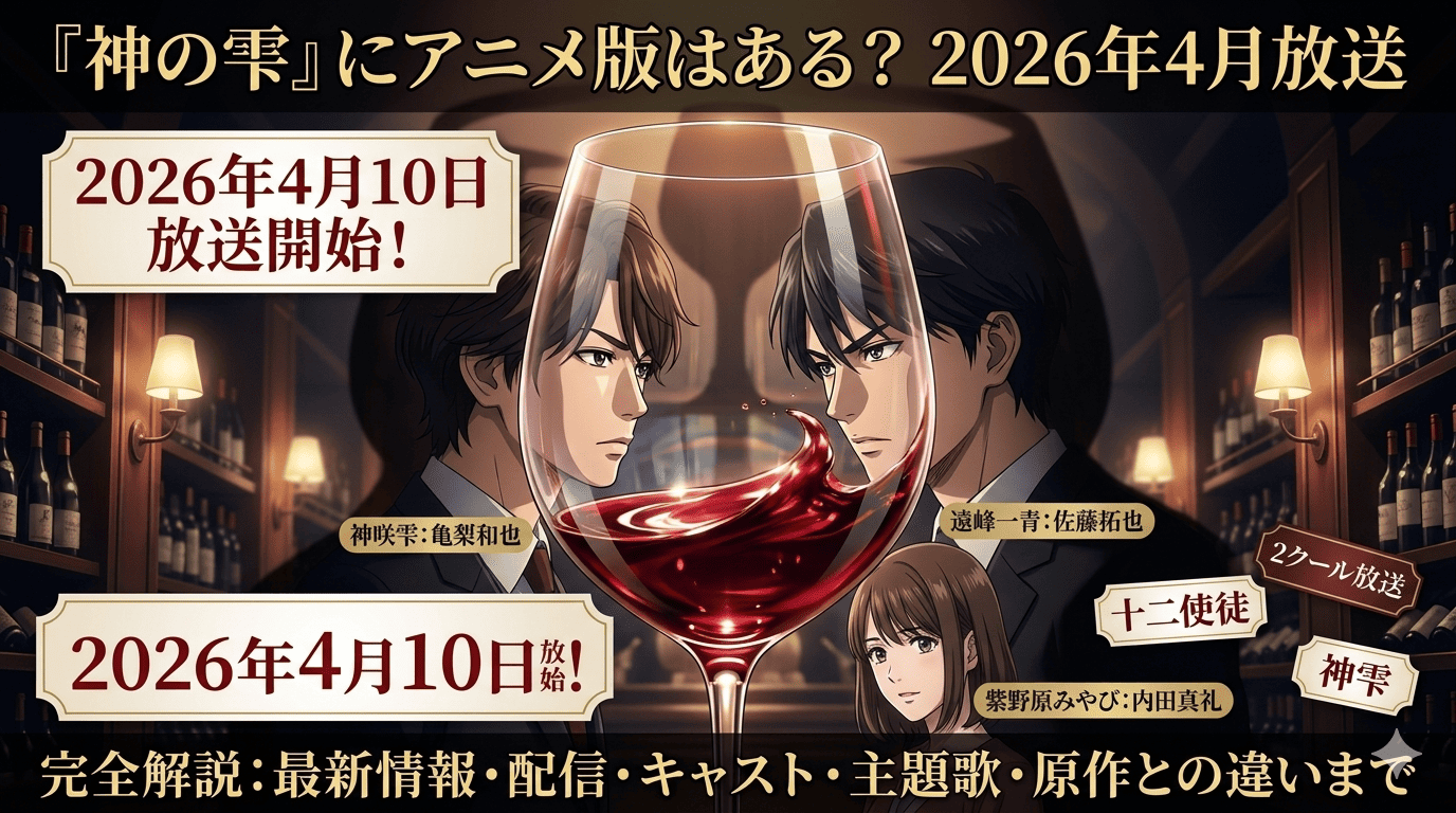 そんな『神の雫』に、ついにTVアニメ版が登場します。しかも今回は、ただ「アニメ化された」という話では終わりません。2026年4月放送アニメとして、放送日・配信・スタッフ・キャスト・主題歌・PV・イベント情報まで、今わかっている情報がしっかり出そろってきました。