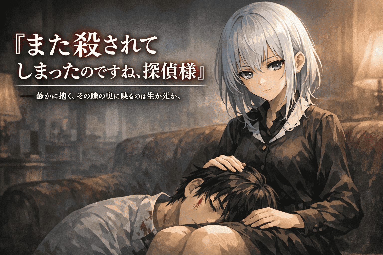 『また殺されてしまったのですね、探偵様』は、死をショックで終わらせません。豪華客船で首吊り死体が見つかり、主人公は喉を刺されて絶命する。それでも物語は止まらない。死は終点どころか、次の推理の材料に変わる。被害者の痛みが、そのまま事件解決のヒントへ転化される。こんなに冷酷な構造なのに、この作品は妙に人肌を残してきます。
