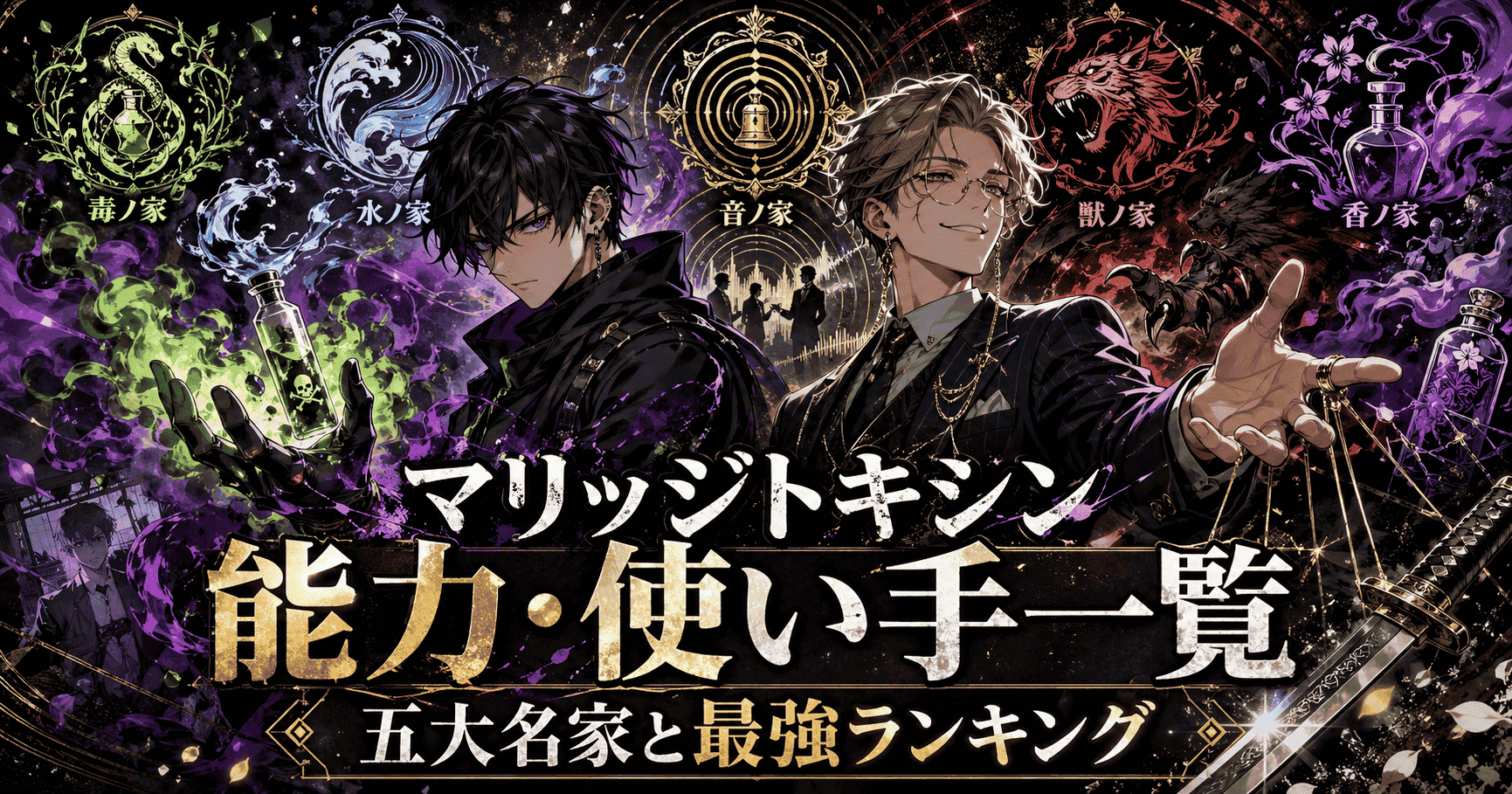 『マリッジトキシン』は連載中作品のため、五大名家・能力・使い手・強さ考察については今後の展開で情報が追加・変更される可能性があります。