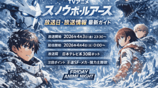 『スノウボールアース』アニメはいつから?放送日・放送局・配信情報を最新情報で整理。あらすじ、注目ポイント、メカ・CG・主題歌の見どころ、放送直前の話題までわかりやすく解説します。